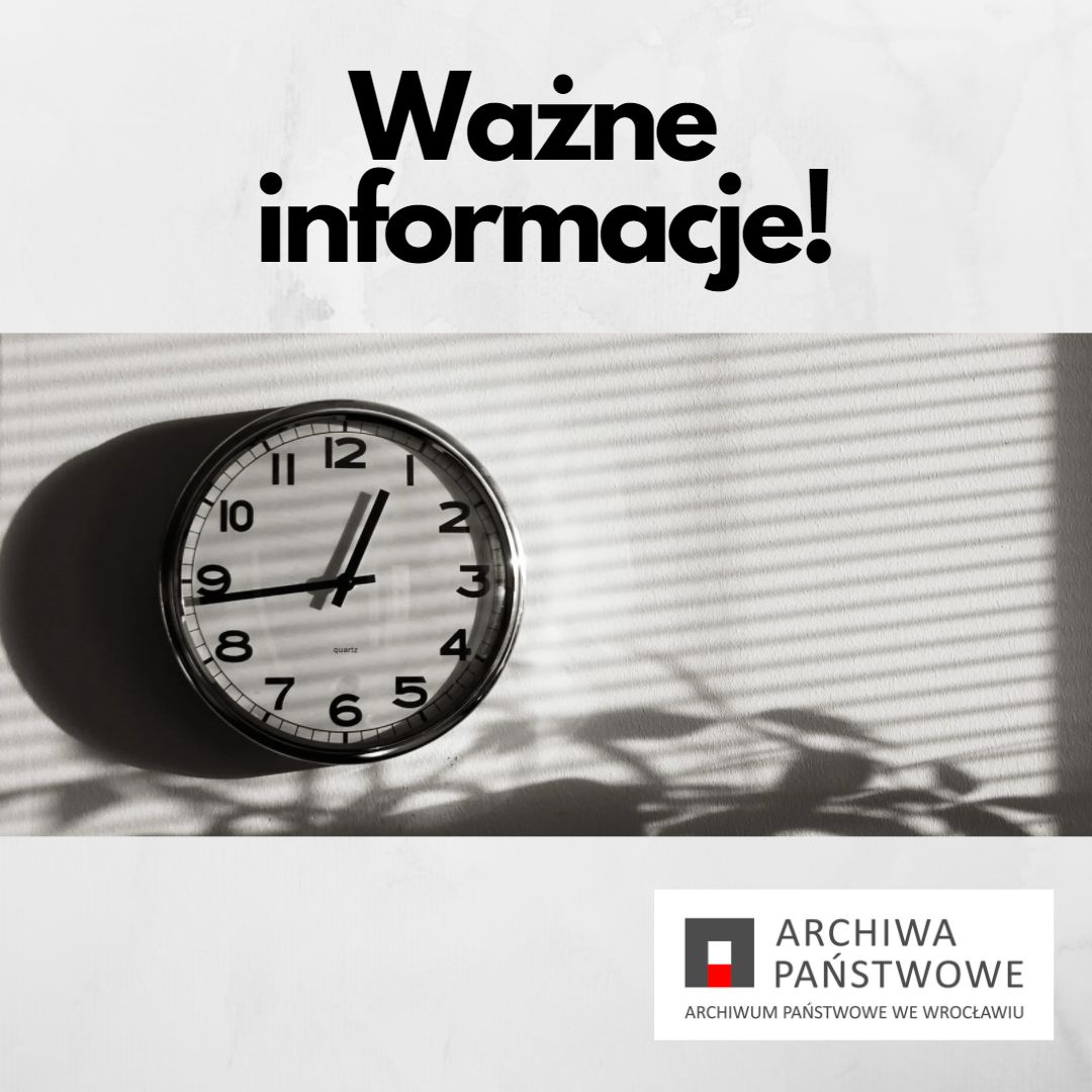 Zmiany godzin pracy czytelni Archiwum Państwowego we Wrocławiu!